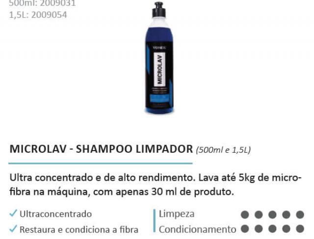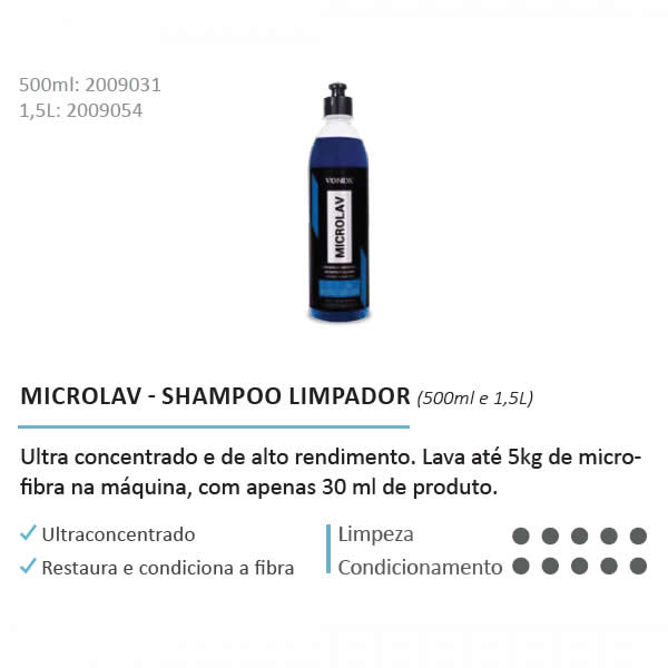 Microlav é um produto voltado para lavagem e condicionamento de panos de microfibra e aplicadores de espuma. Sua fórmula limpa com eficiência e restaura as fibras, deixando-as como novas e super macias.
