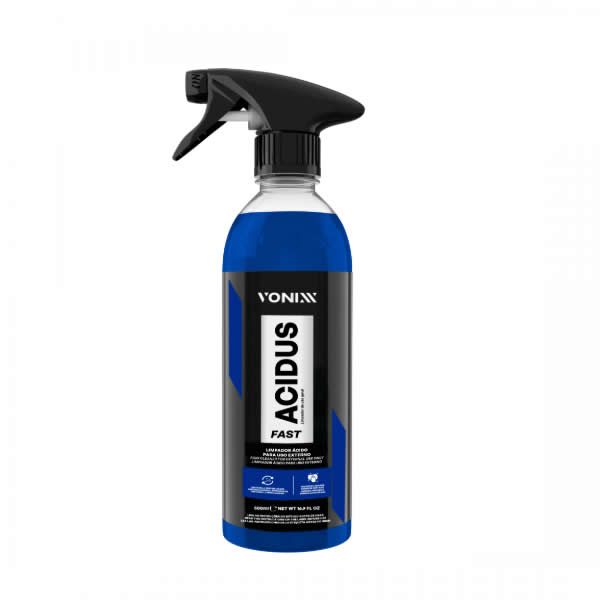ACIDUS FAST é um limpador ácido automotivo de alta performance, desenvolvido para remover sujeiras minerais em rodas, chassis, emblemas, plásticos externos e metais. Sua fórmula balanceada permite restaurar a originalidade de diversas áreas do veículo, eliminando marcas d'água leves em vidros e pinturas, além de poder ser utilizado na limpeza de motores e detalhes de difícil acesso, grades e contornos.