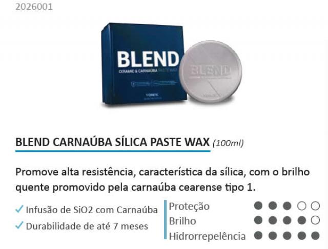 Blend Ceramic & Carnaúba Paste Wax - Black Edition é um cera híbrida especialmente desenvolvida para carros de cor escuras, principalmente os de cor preta. Composta por Sio2 e pela mais pura carnaúba tipo 1, protege a superfície veícular por até sete meses. O produto promove a resistência cerâmica, brilho quente da carnaúba e hidrorrepelência.
