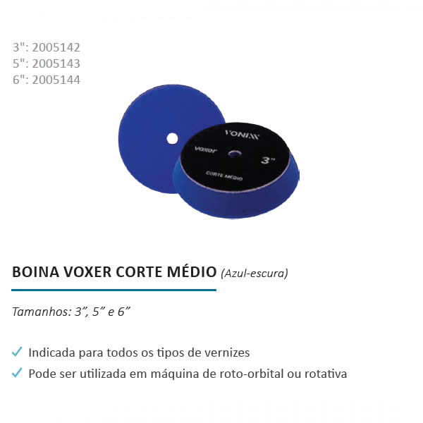 Boina Voxer Corte Médio foi desenvolvida para remoção de defeitos moderados.